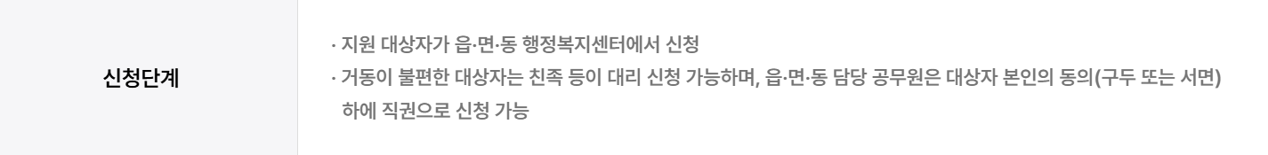 - 방문신청: 거주지 읍·면·동 행정복지센터